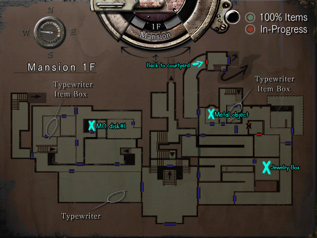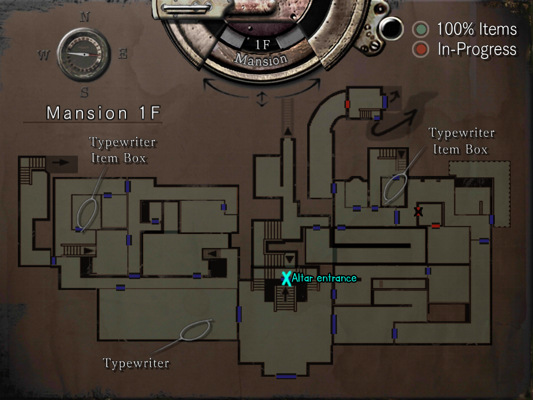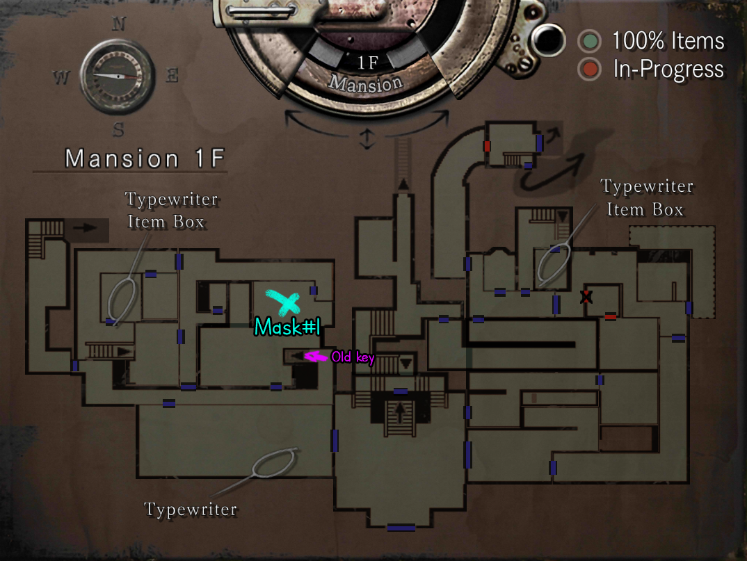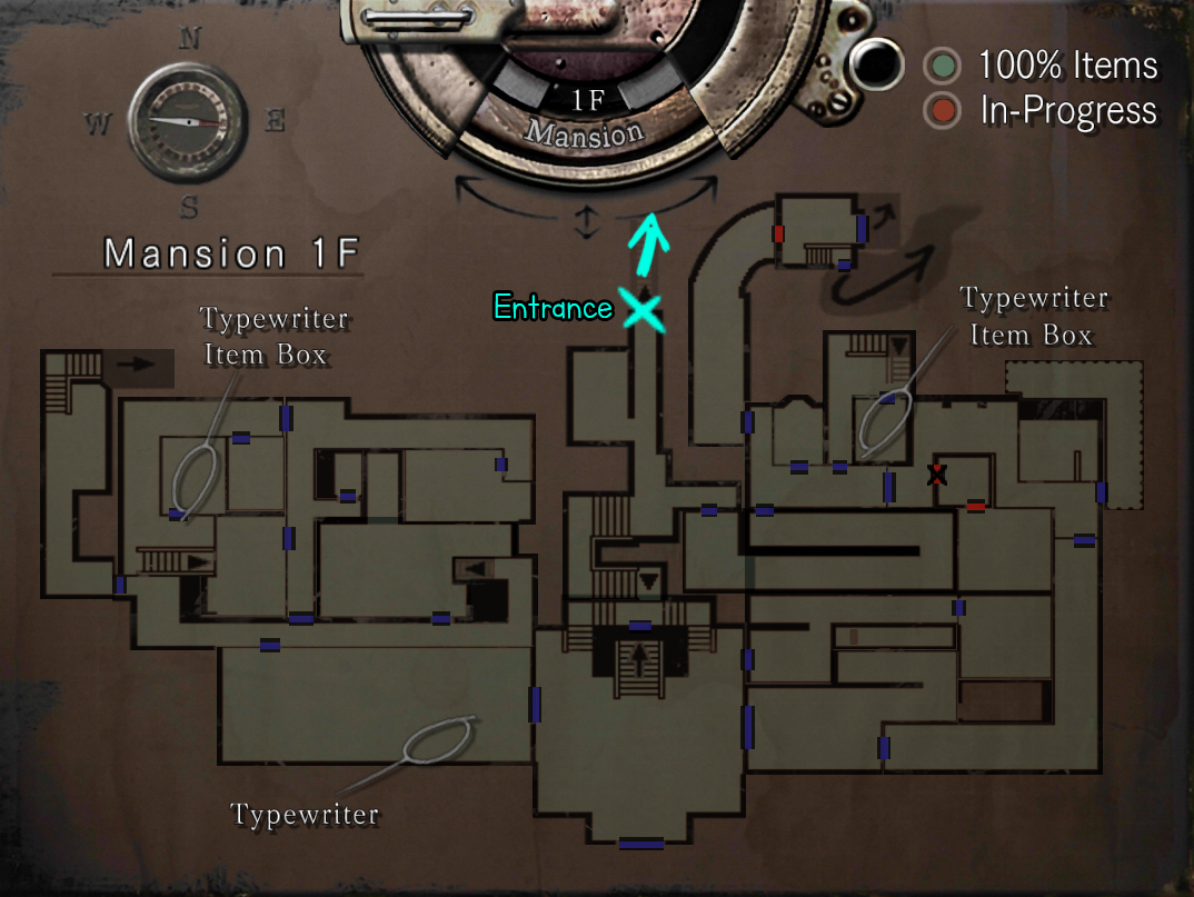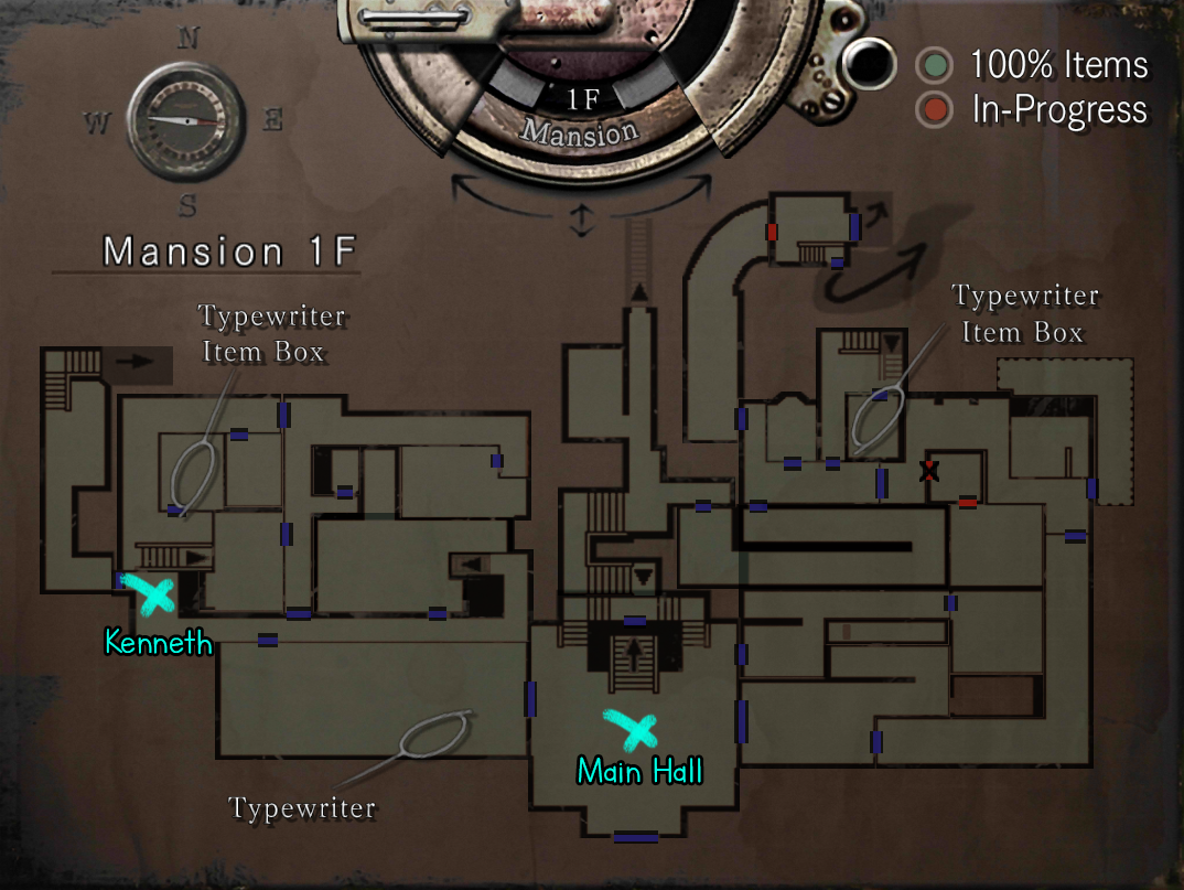 Main HallAfter the cutscene, you'll see that everyone's gone. Go pick up the handgun. Chris only has 6 spaces in his inventory, so you'll have to use the item boxes more than with Jill, and he also doesn't get the Grenade Launcher.