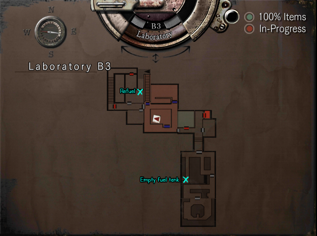 Pick up the first aid spray and ink ribbons. There is also a handgun clip on the small table with the lantern on Easy mode. Pick up the other item in here, the Fuel Canteen. It's empty so go up to the Gas Canister. Each Gas Canister has 4 units of fuel (Normal/Hard) and 6 on Easy. You can put away the knife if you haven't already, and the Chemical. Take a health item if you wish, and take the Old Key from the typewriter. Make sure to have at least 3 inventory spaces free, and my advice would be to not carry any health because you'll be coming up on some more, just make sure to be on Fine. Now go and burn the zombie corpses. Head back up the stairs and come towards the camera. Go down the short hall and enter the door, preparing for a zombie attack (Normal/Hard). When you're through, there will be a zombie in the way of where you need to go. Avoid it or kill it, just run to the other end of the hallway and past the other zombie and into the main hall. Go into the hallway where you saw the first zombie in the game and then go down the stairs and unlock the door and discard the Sword Key. Get the Old Key in the kitchen along with anything else. A zombie is on the floor and another will come from above when you try to leave so avoid them and run up the stairs. Head back through the dining room to the main hall and then go through the upper floor dining room and then into the stair room with the safe room at the bottom.