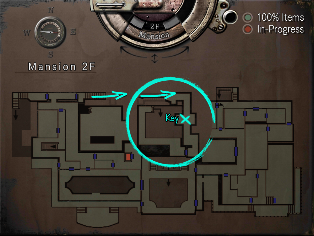 control room puzzle. Then pick up gallery key. Then go back upstairs to the residence.