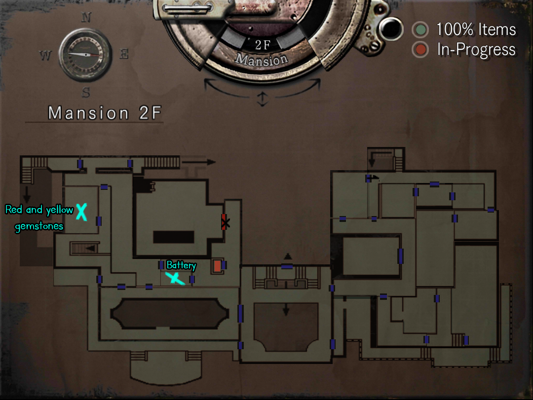20) Pick up the battery. Pick up the red and yellow gemstones from the hawk